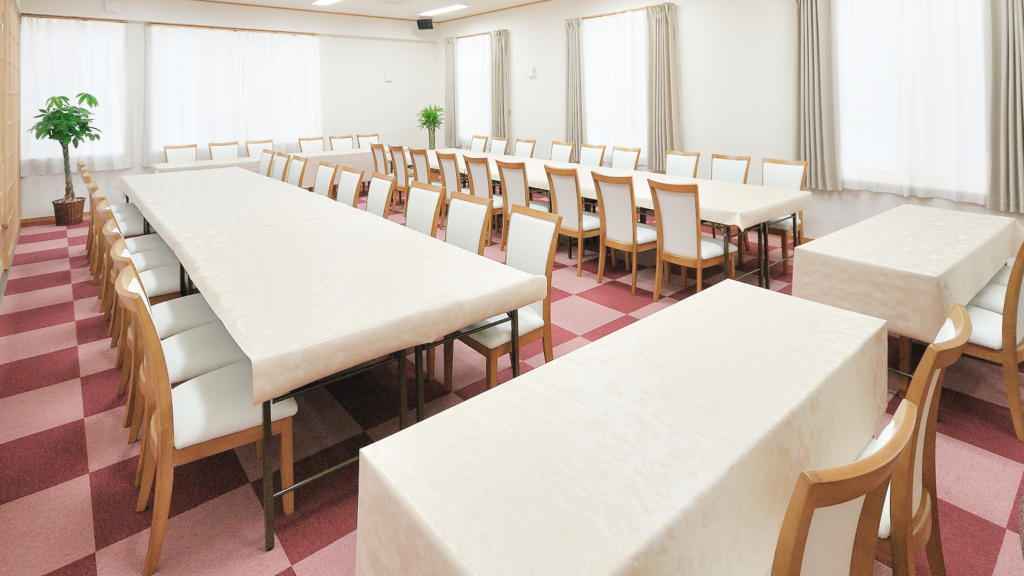 大広間が2つあり、5人から最大90人ほどまでのお席をご用意しております。